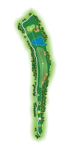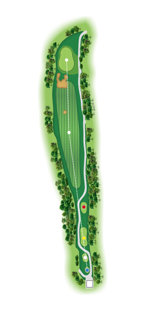 내리막 숏홀로 넓은 시야와 수려한 경관을 자랑하며 한 클럽정도 짧게 잡고 그린중앙을 공략하는 것이 무난하다.