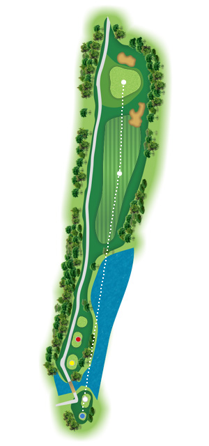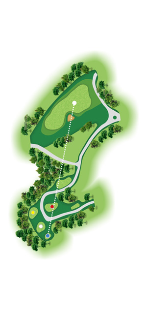 내리막 숏홀로 넓은 시야와 수려한 경관을 자랑하며 한 클럽정도 짧게 잡고 그린중앙을 공략하는 것이 무난하다.