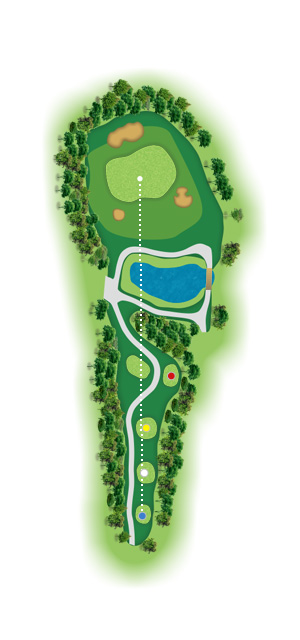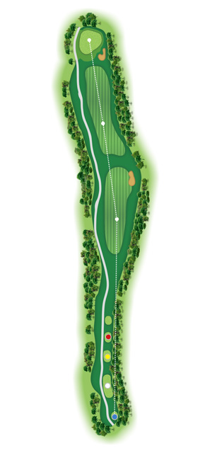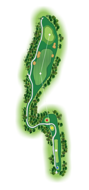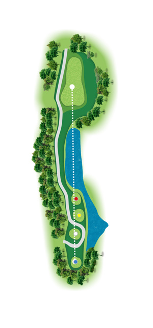 드라이버 샷만 페어웨이를 지키면 거리가 짧은 홀이라 숏 아이언으로도 그린을 공략할수 있으나 어프러치가 정확하지 않을 경우 그린이 넓은 이단 그린이라 자칫하면 3퍼팅도 감수해야 하는 홀이다.